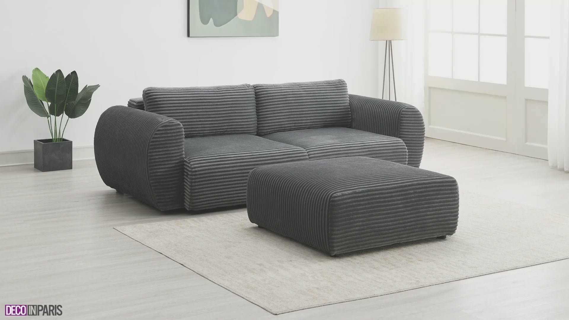 Canapé panoramique convertible matelassé avec coffre en velours gris LUCIANO - Angle gauche