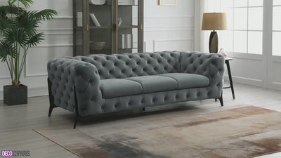 Canapé 3 places capitonné chesterfield velours gris CARMEN