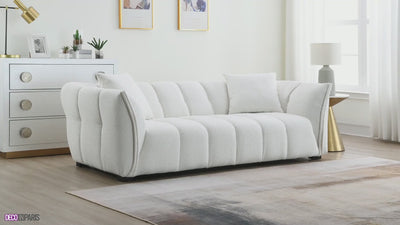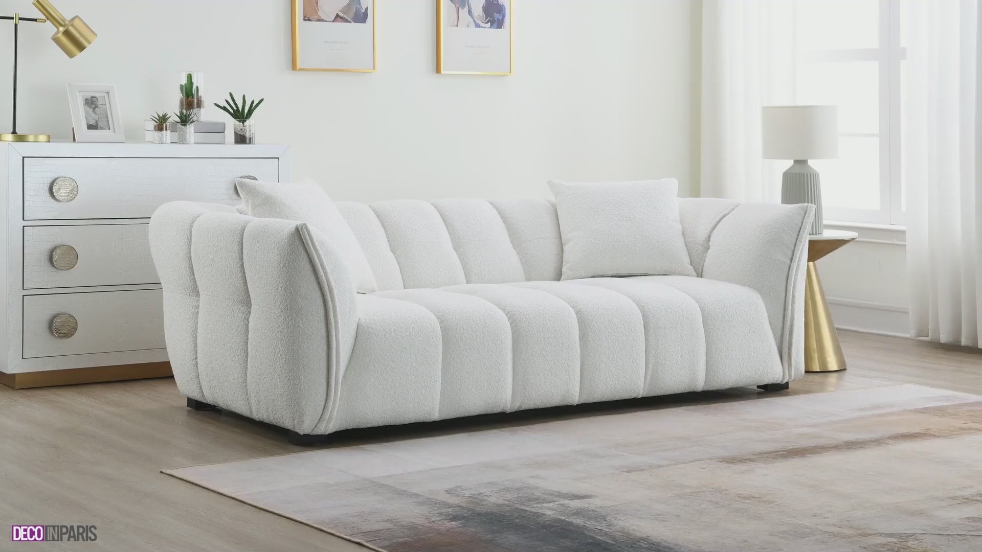 Confortable et tendance, notre canapé 3 places effet peau de mouton écru ELENA apportera un style contemporain et du renouveau à votre espace de vie.