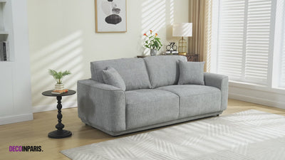 Son revêtement en velours chiné au toucher délicat et à l’aspect légèrement texturé apporte une note chaleureuse et lumineuse à votre intérieur. Sa teinte gris, à la fois sobre et élégante, s’adapte facilement à tous les styles de décoration, du contemporain au plus classique.