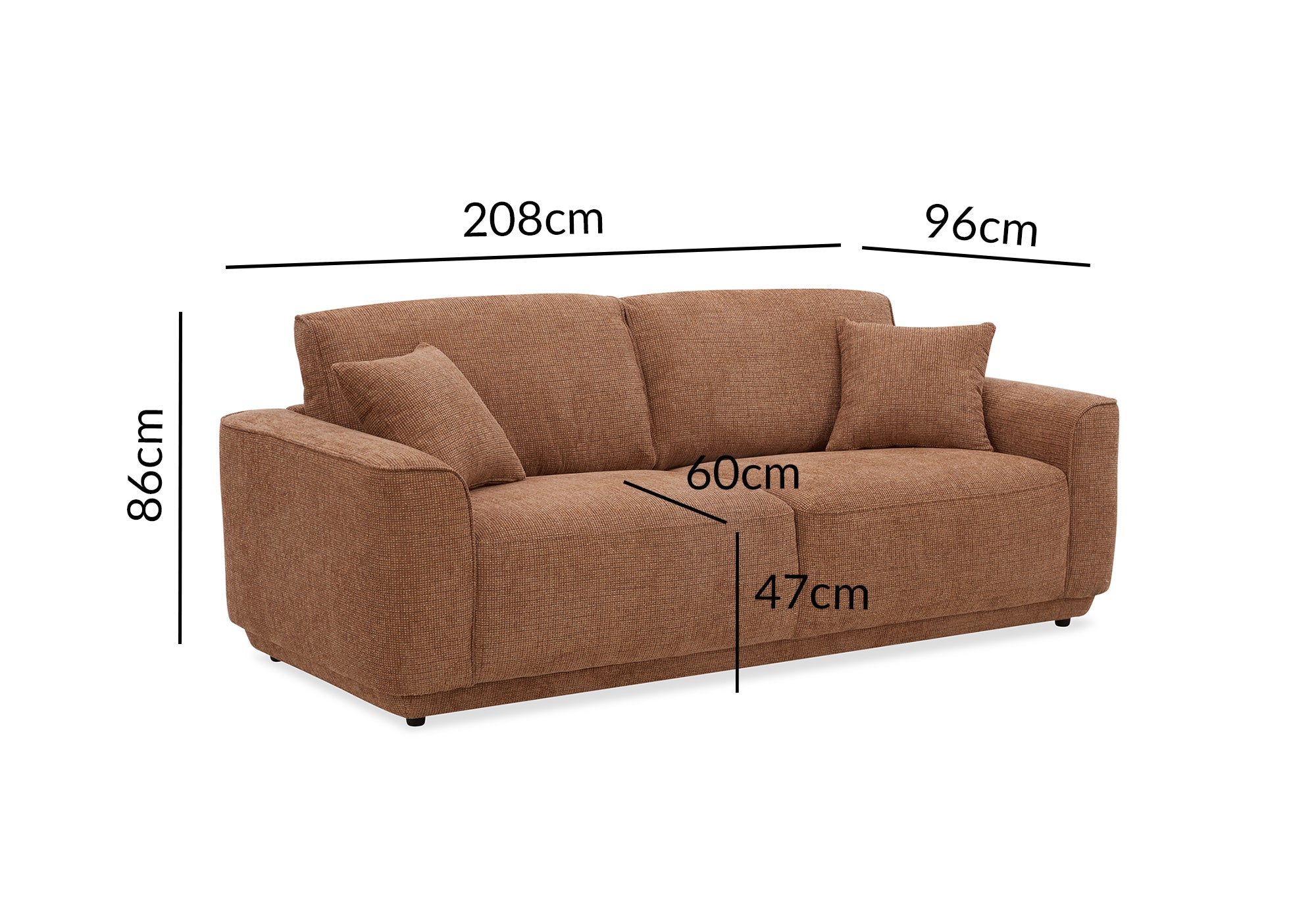 Le canapé droit 3 places CARLOTA en velours chiné terracotta combine douceur, style et confort pour sublimer votre salon.