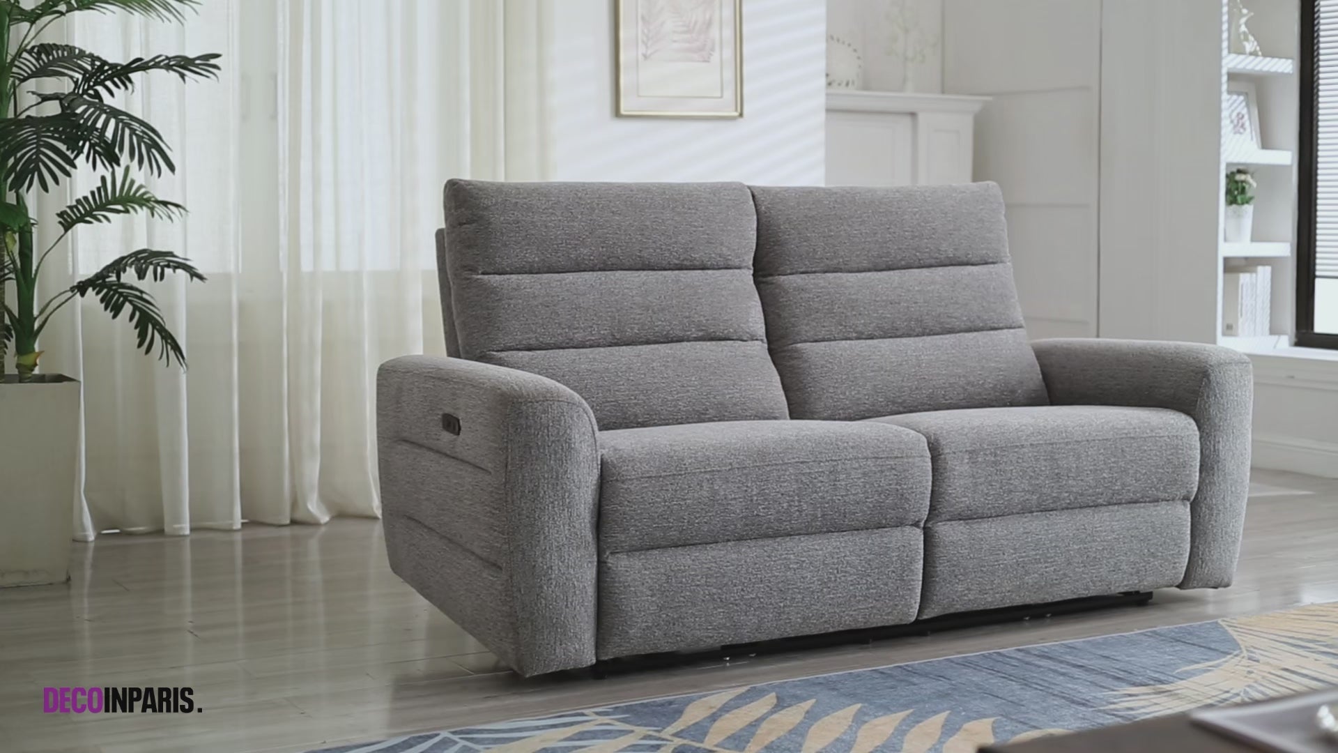 Canapé 3 places relax électrique en tissu bouclette gris DAVY