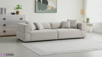 Que vous soyez seul, à deux ou en groupe, le canapé sera votre compagnon idéal, il propose un espace pouvant accueillir jusqu’à 4 personnes, garantissant une résistance à l’usure du canapé. Un canapé aux lignes épurées avec une structure en bois pour garantir une stabilité et durabilité du produit sur de nombreuses années.