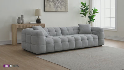 Notre canapé design 4 place en tissu gris BELLA deviendra la pièce maîtresse de votre salon. Son design moderne et épuré apportera une touche d'élégance à votre décoration intérieure. Avec ses courbes bombées et ses finitions soignées, ce canapé 3 places s'intègrera parfaitement à tous les styles d'intérieur en passant du plus classique au plus moderne.