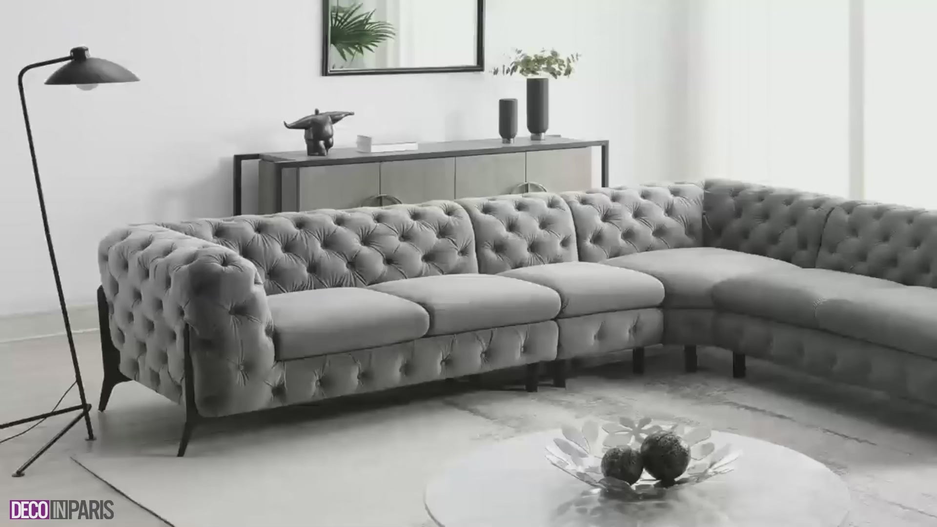 Canapé capitonné chesterfield d'angle réversible en velours gris CARMEN Prix de vente1.499,00 € Prix normal2.139,00 € - 30%