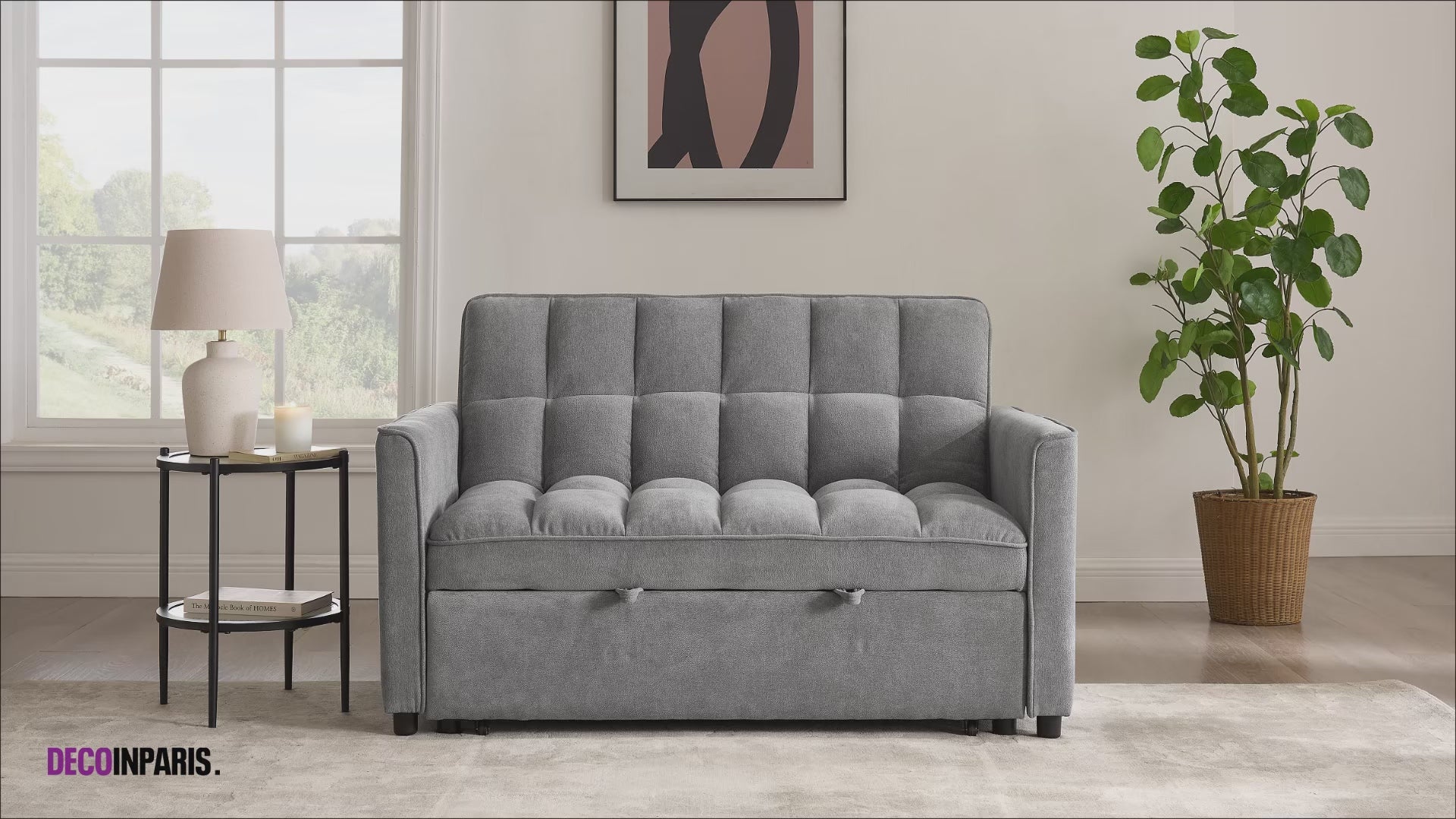 Le canapé-lit JASPER en velours texturé gris est conçu pour répondre aux besoins de confort et de praticité dans les espaces de vie contemporains. Grâce à son système de tiroir, il se transforme en lit en quelques instants , permettant un couchage simple et fonctionnel au quotidien ou pour recevoir des invités.