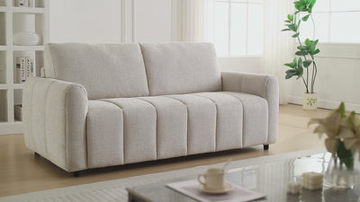 Avec son design structuré et sa silhouette chaleureuse, le canapé convertible ISANDRO est une véritable pièce maîtresse pour sublimer votre salon tout en offrant un couchage confortable. Son revêtement en tissu beige au toucher doux et ses détails de surpiqûres verticales lui donnent une allure à la fois moderne et accueillante.