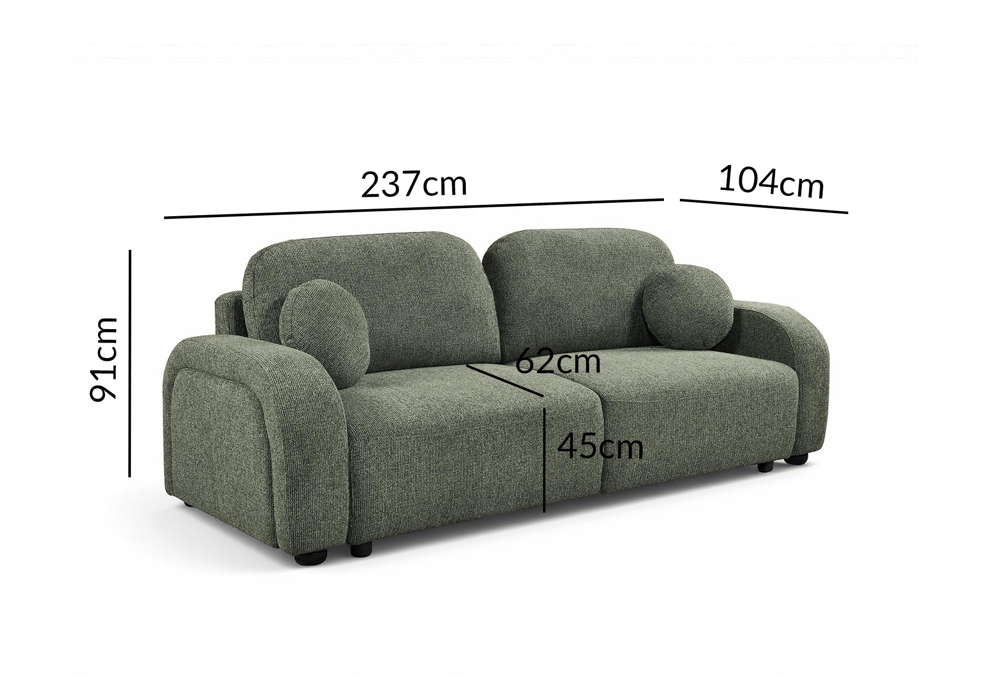 Le canapé MAYORA en tissu bouclette vert combine confort, praticité et gain de place dans un format compact. Conçu pour 3 places, il s’intègre facilement dans un salon, une chambre ou un studio, en offrant une assise agréable au quotidien et une solution de couchage pratique grâce à son mécanisme convertible simple et rapide.
