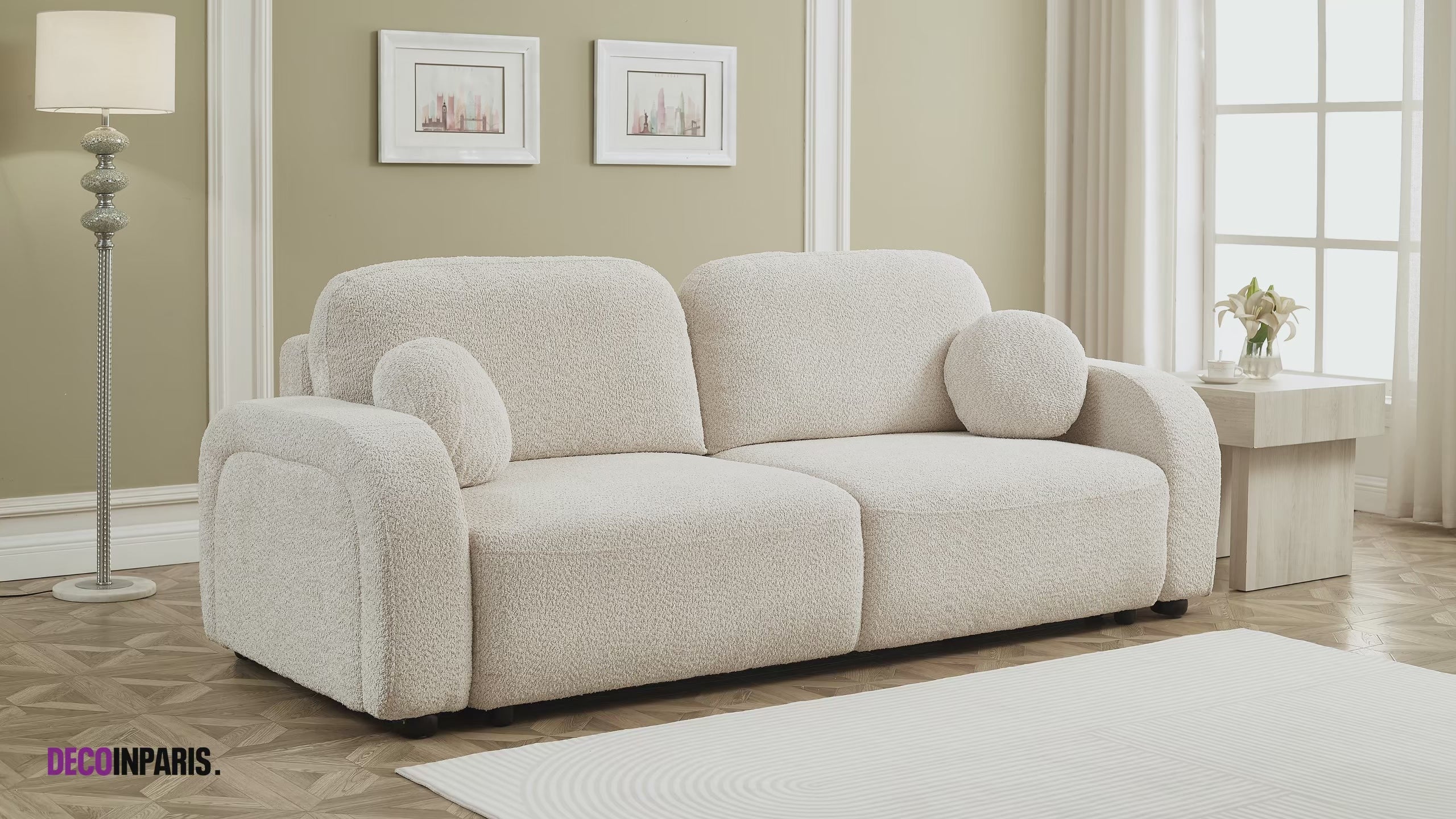 Canapé convertible 3 places en tissu bouclette bleu MAYORA - DécoInParis
