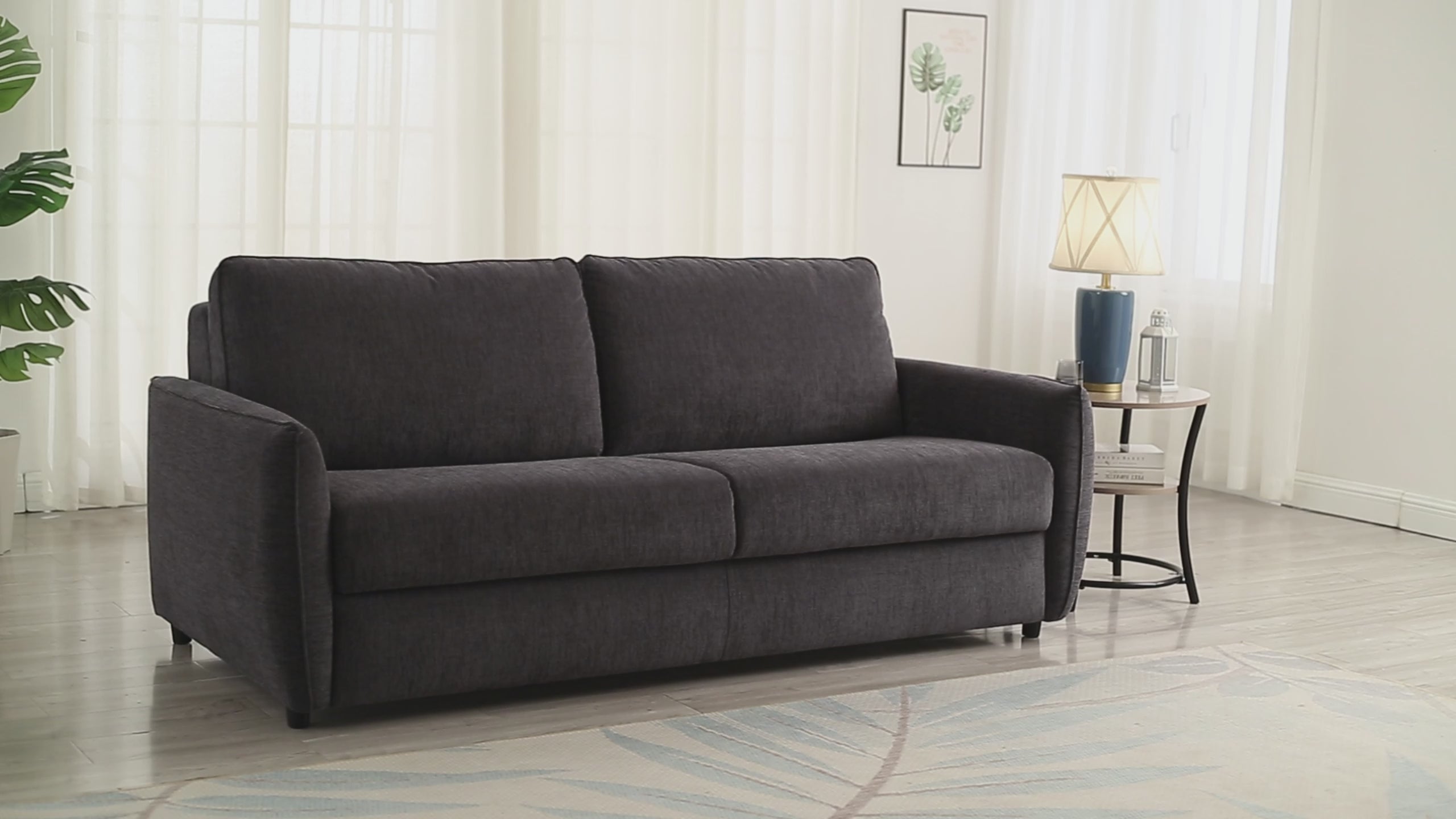 Canapé convertible 3 places en velours texturé gris foncé CHIARA
