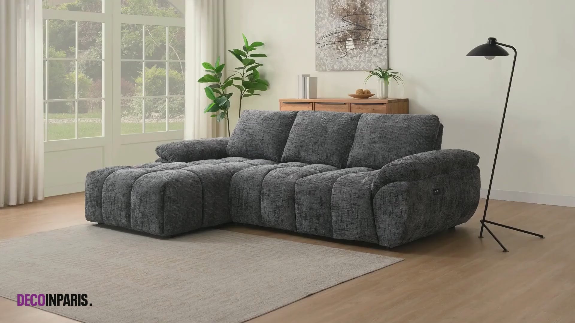 Le canapé d’angle relax électrique en velours chiné gris ALPES allie avec élégance confort et design contemporain. Grâce à son assise généreuse, ses formes arrondies et son revêtement en velours chiné texturé, il apporte une touche chaleureuse, moderne et raffinée à votre salon.
