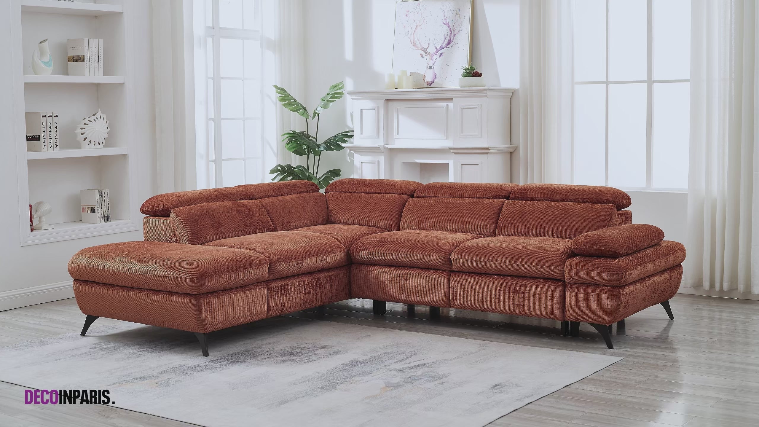 Canapé d'angle convertible avec coffre en velours chiné terracotta LUFY - Angle gauche