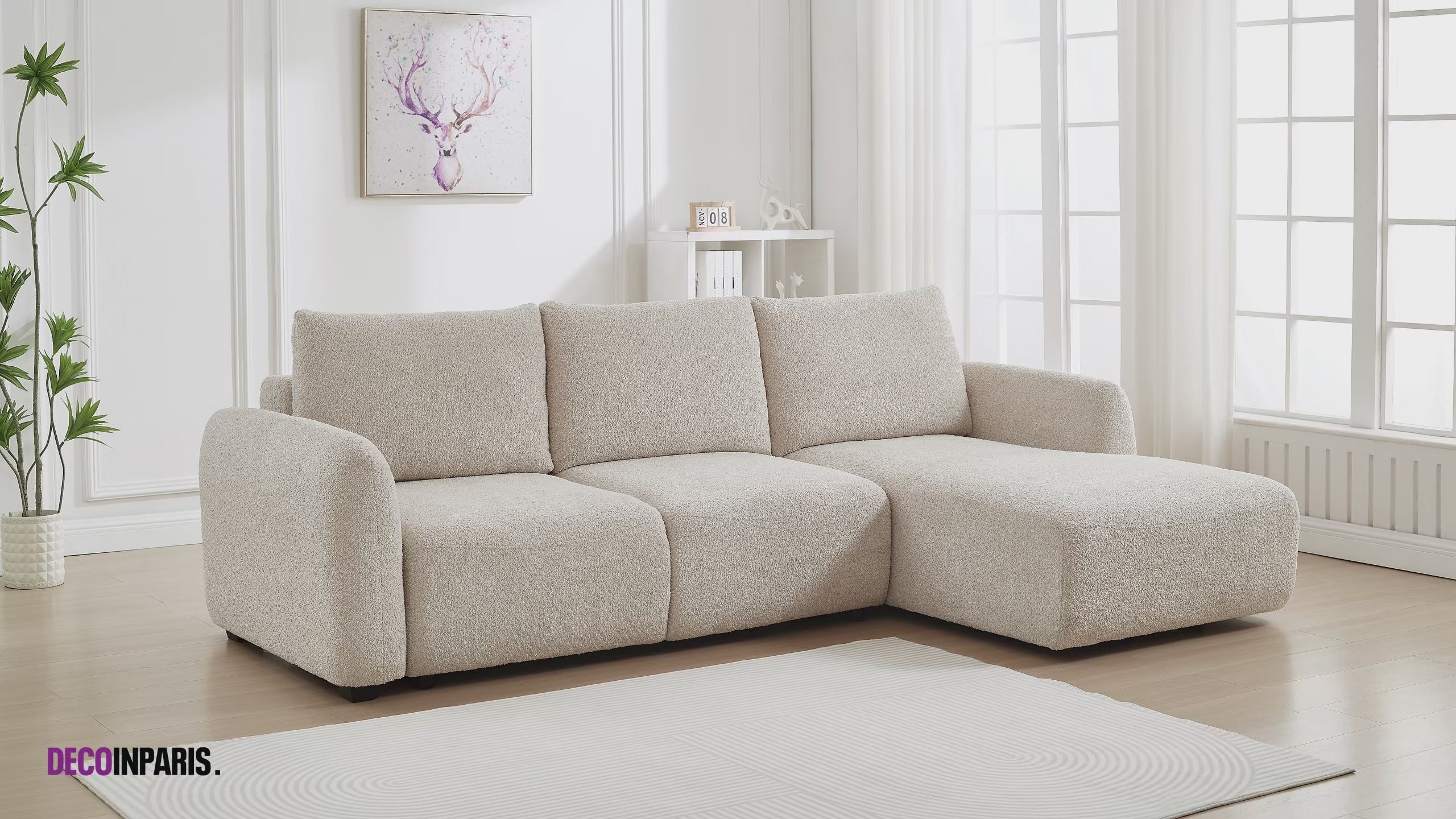 Canapé d'angle convertible avec coffre en velours chiné gris MARLA - Angle droit - DécoInParis