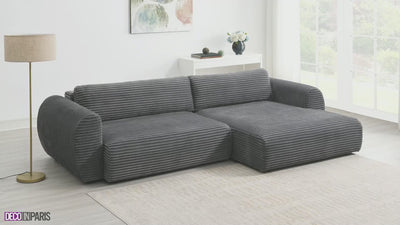 Faites de votre salon un espace chaleureux et accueillant avec le canapé d'angle convertible TILDA en velours côtelé épais, la solution idéale pour allier élégance, confort et praticité.