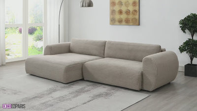 Canapé d'angle convertible avec coffre en velours gros côtelé doux taupe TILDA - Angle gauche Prix de vente949,00 € Prix normal1.289,00 € - 26%