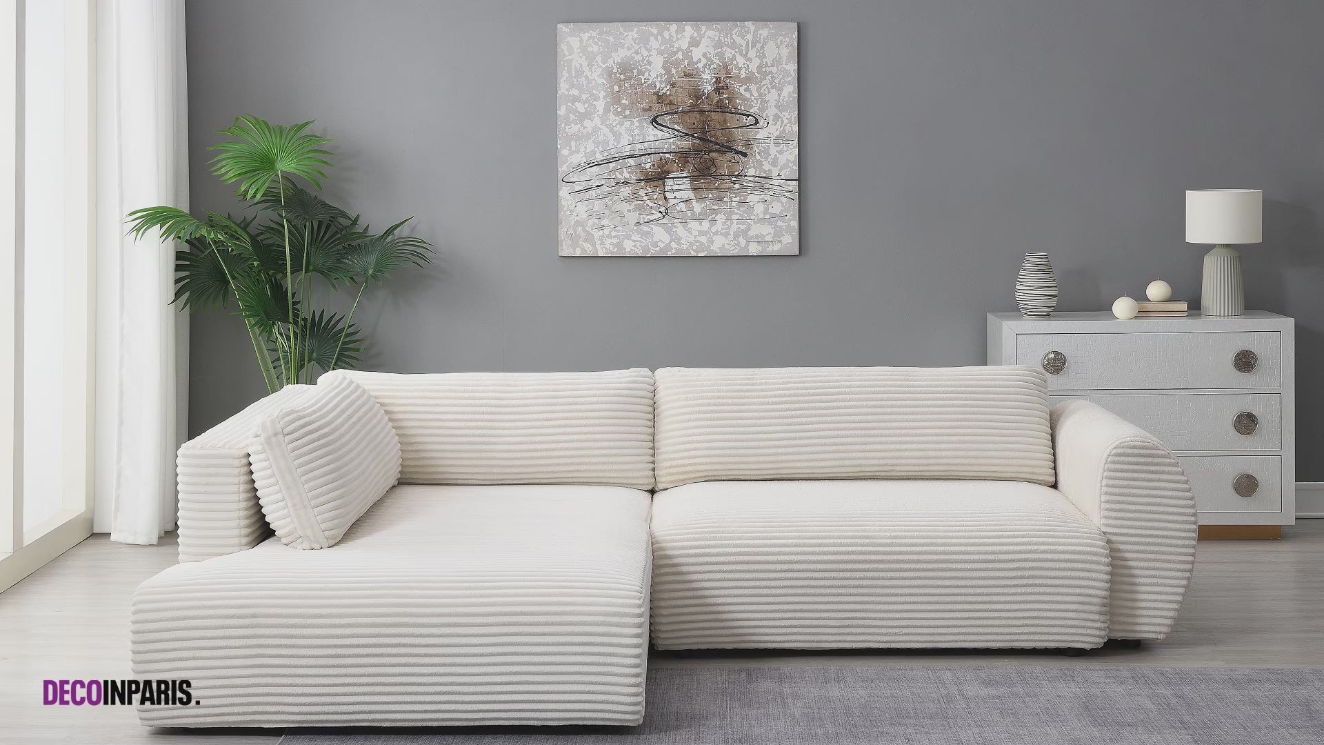Le canapé d'angle convertible TILDA en velours côtelé beige est donc l'alliance parfaite de confort, élégance et praticité, transformant votre salon en un espace à la fois accueillant et sophistiqué.