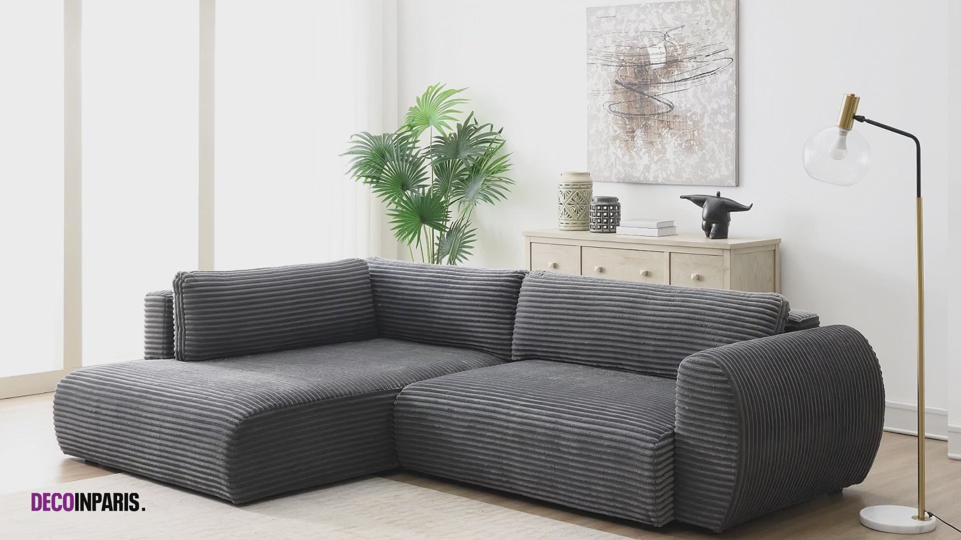Le canapé d'angle convertible TILDA en velours côtelé gris est donc l'alliance parfaite de confort, élégance et praticité, transformant votre salon en un espace à la fois accueillant et sophistiqué.