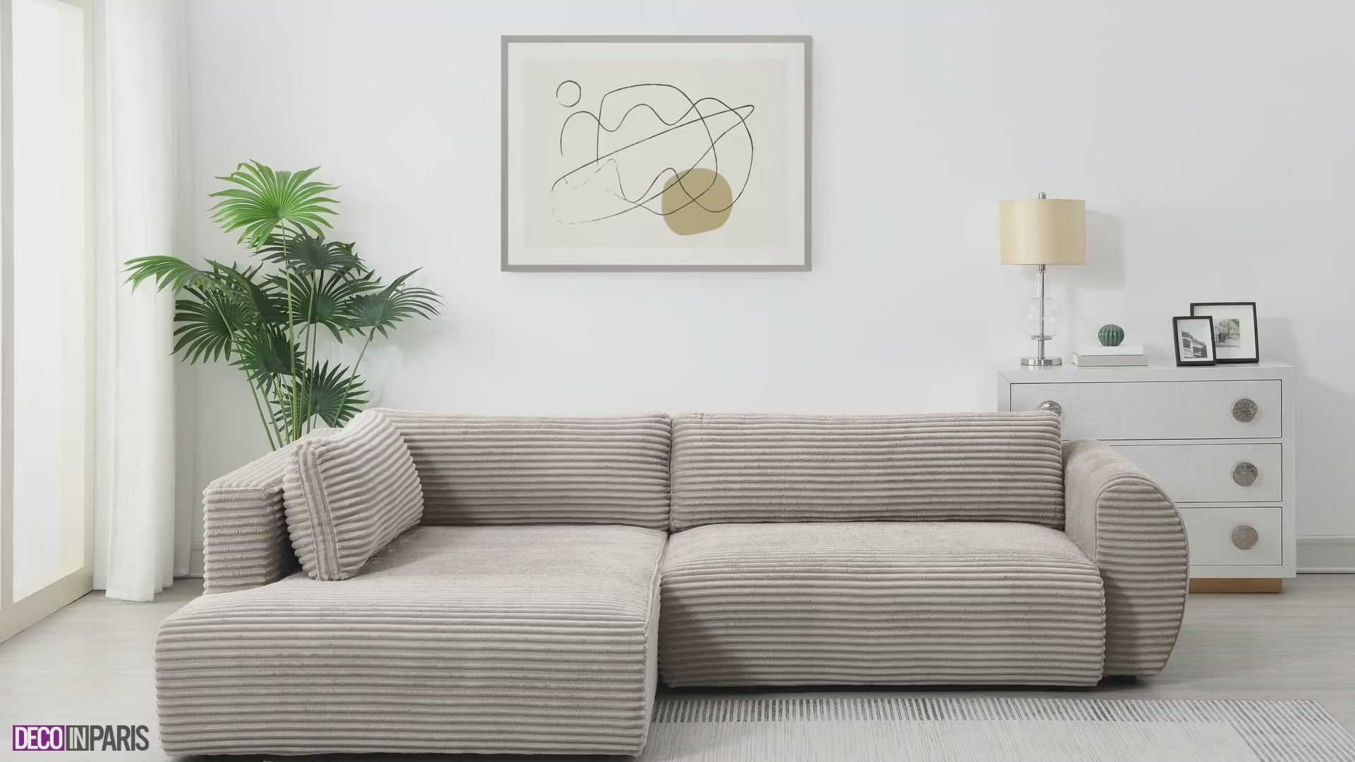 Le canapé d'angle convertible TILDA en velours côtelé taupe est donc l'alliance parfaite de confort, élégance et praticité, transformant votre salon en un espace à la fois accueillant et sophistiqué.