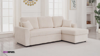 Ce canapé convertible et réversible s’adapte à toutes vos envies, offrant confort, praticité et style.