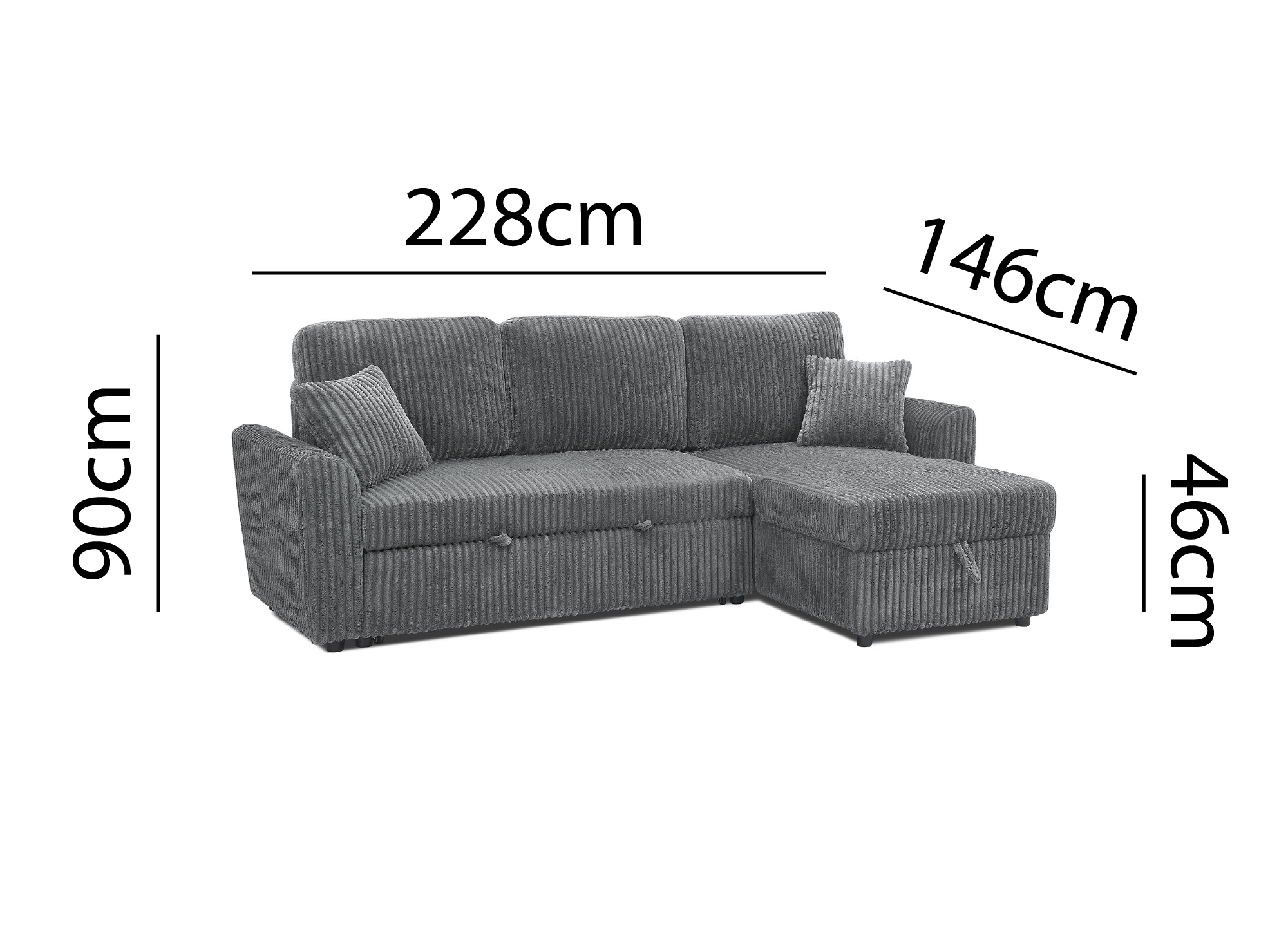 Canapé d'angle convertible et réversible avec coffre en velours côtelé épais gris ADRYEN