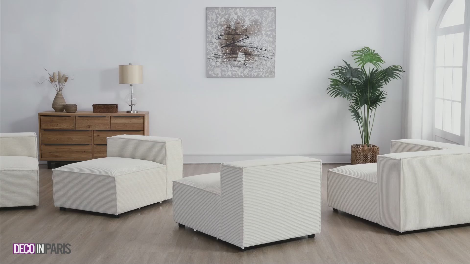 Le canapé d'angle modulable en velours côtelé épais beige HARLEM XL vous offrira un véritable confort. Ses coussins rembourrés, ainsi que son assise moelleuse vous permettront de vous relaxer après une longue journée. Que ce soit pour regarder vos émissions préférées ou pour accueillir vos invités, le canapé d'angle HARLEM vous garantira un espace convivial et confortable pour profiter de vos moments de relaxation.