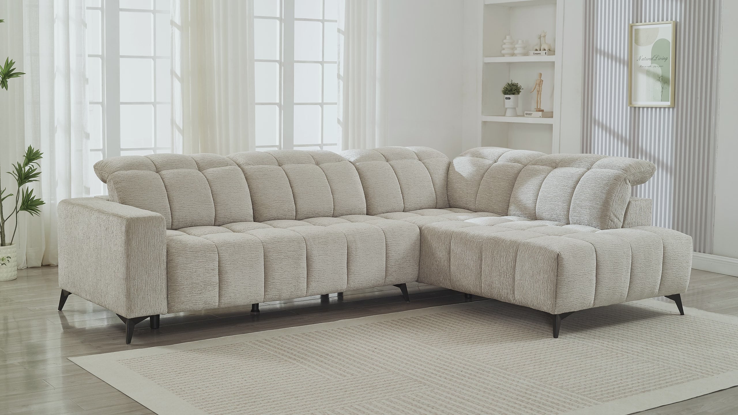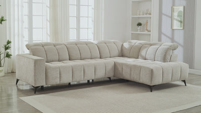 Canapé d'angle relax électrique en velours chiné beige ALVAR - Angle droit