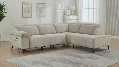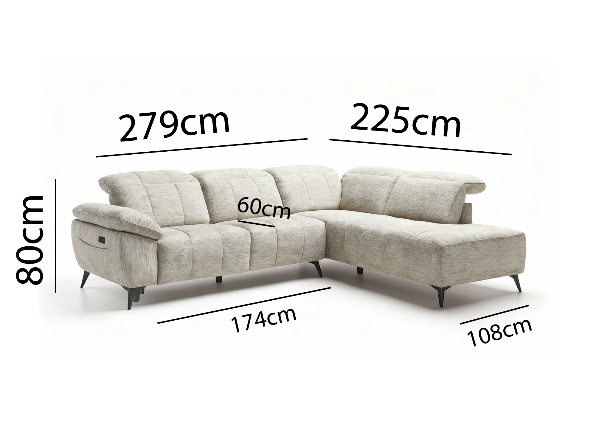 Avec son allure moderne et son confort haut de gamme, le canapé d’angle relax électrique SOLINA en velours chiné beige est une invitation à la détente. Parfait pour les salons spacieux, il allie esthétique raffinée et fonctionnalités bien pensées pour un usage quotidien.
