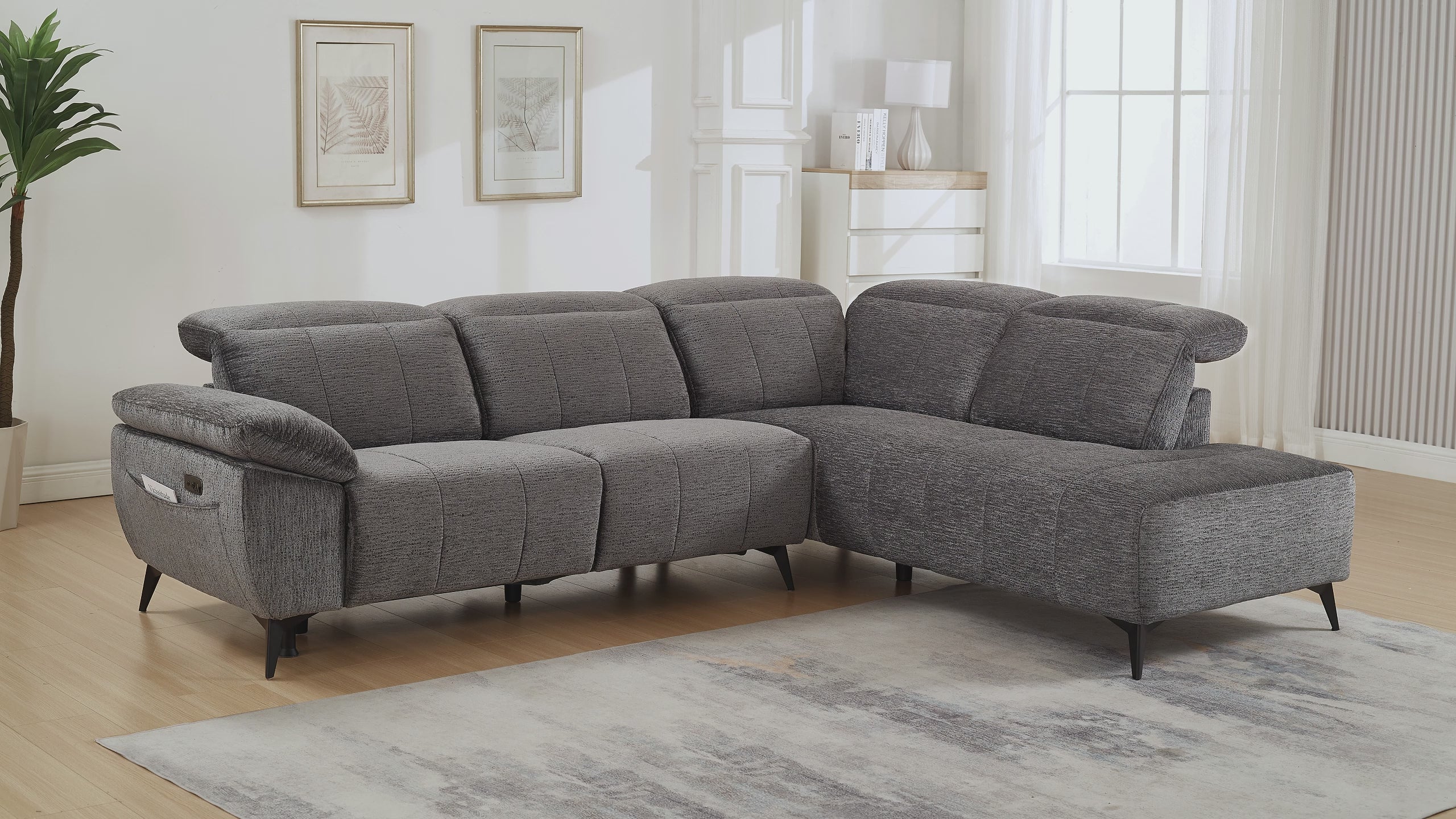 Avec son allure moderne et son confort haut de gamme, le canapé d’angle relax électrique SOLINA en velours chiné gris est une invitation à la détente. Parfait pour les salons spacieux, il allie esthétique raffinée et fonctionnalités bien pensées pour un usage quotidien.
