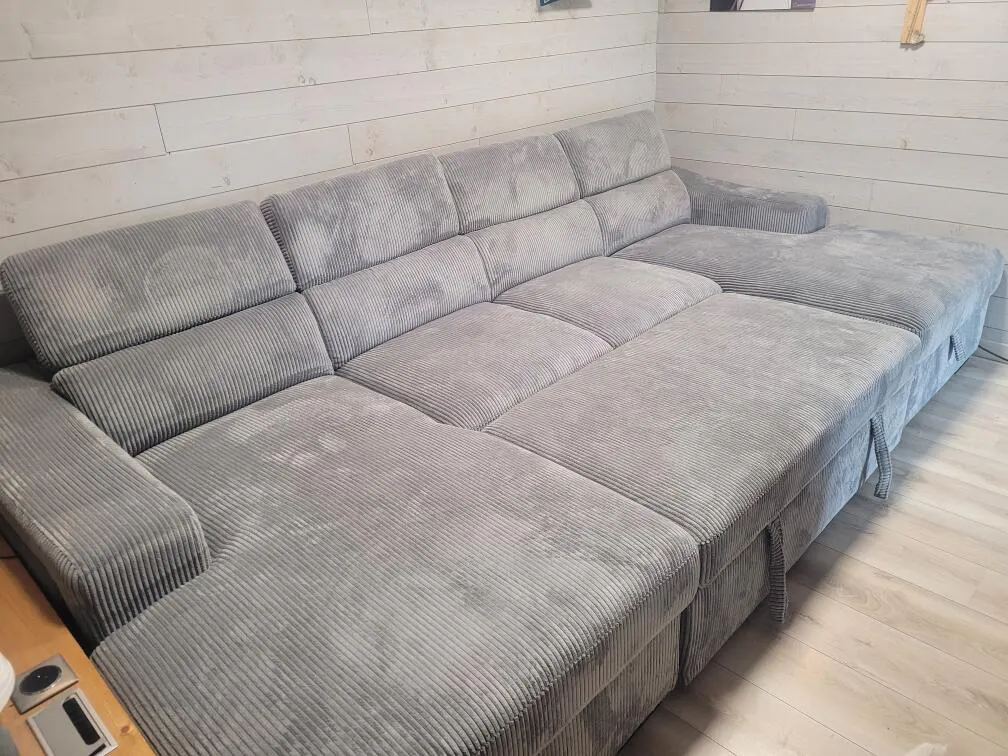 Canapé panoramique convertible avec 2 coffres en velours côtelé épais gris VELORA Prix de vente1.099,00 € Prix normal1.499,00 € - 27%