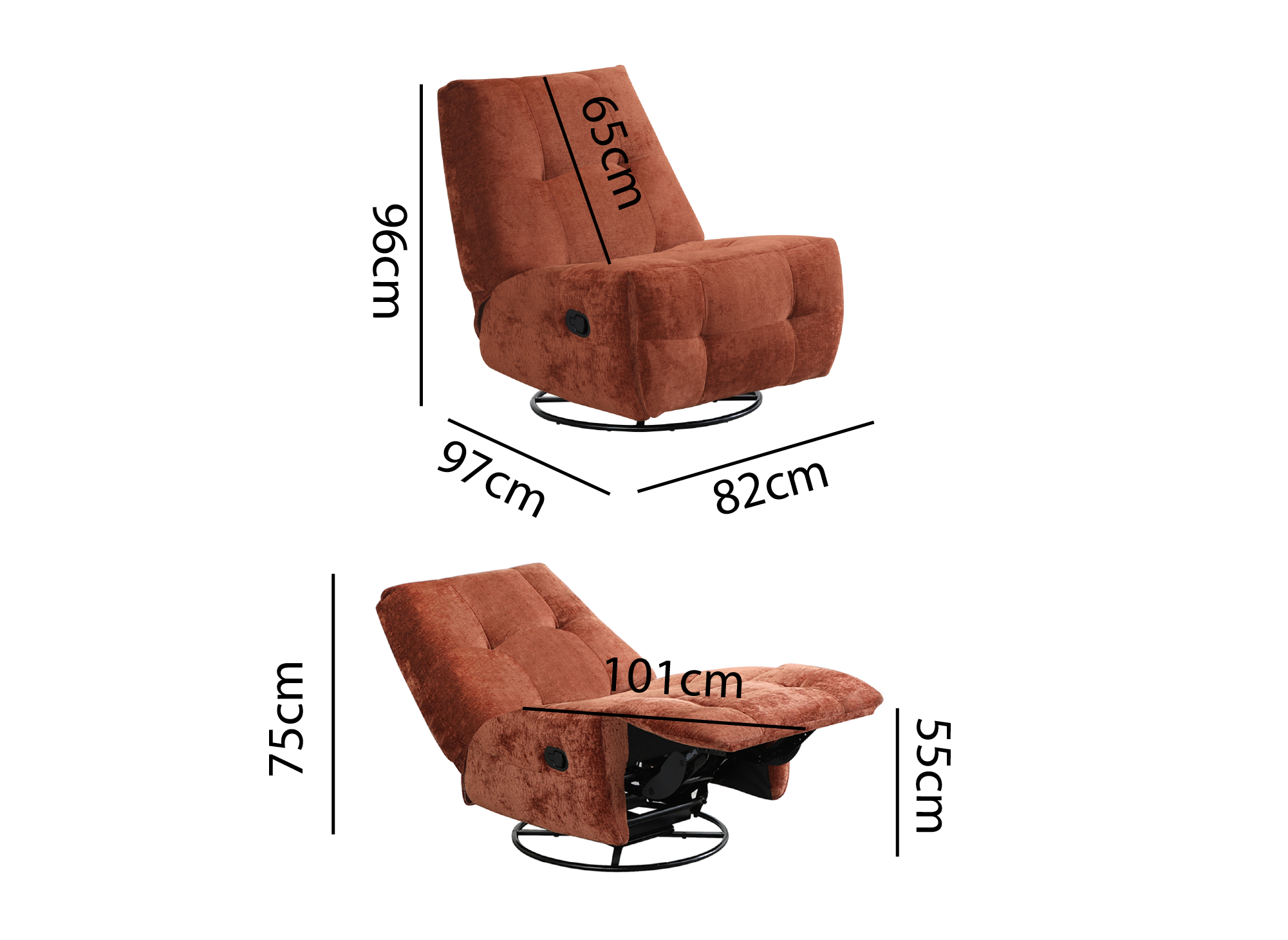 Fauteuil relax pivotant en velours chiné terracotta LISON
