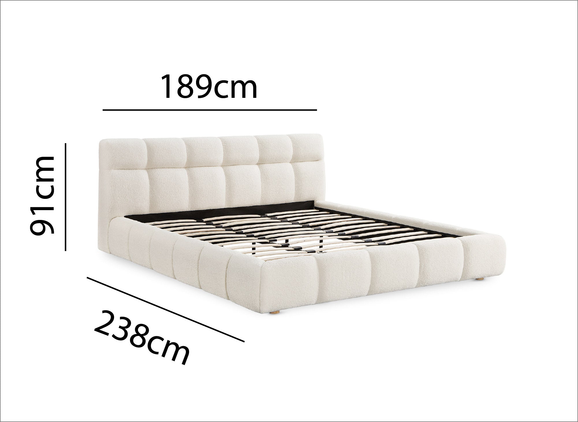 Le revêtement en tissu bouclette doux dans une teinte écru chic apporte une touche de raffinement à tout type de décoration intérieure, tandis que la tête de lit capitonnée crée une ambiance chaleureuse et confortable.