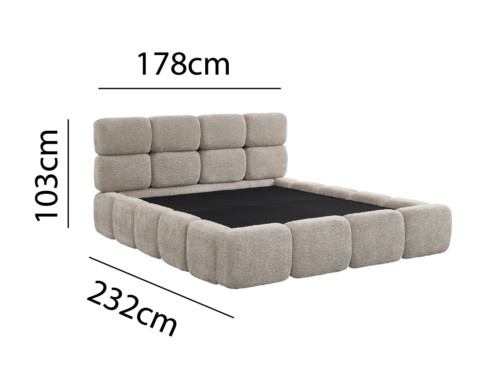 Lit coffre en tissu bouclette taupe 140x190 cm BUBBLE