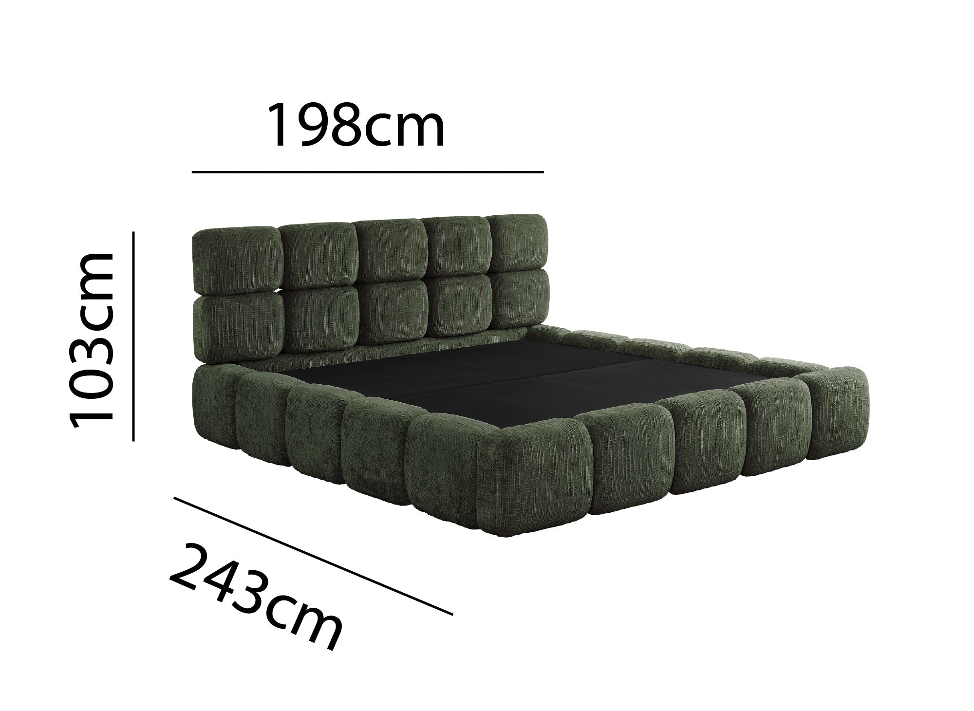 Lit coffre en velours chiné vert olive 160x200 cm BUBBLE