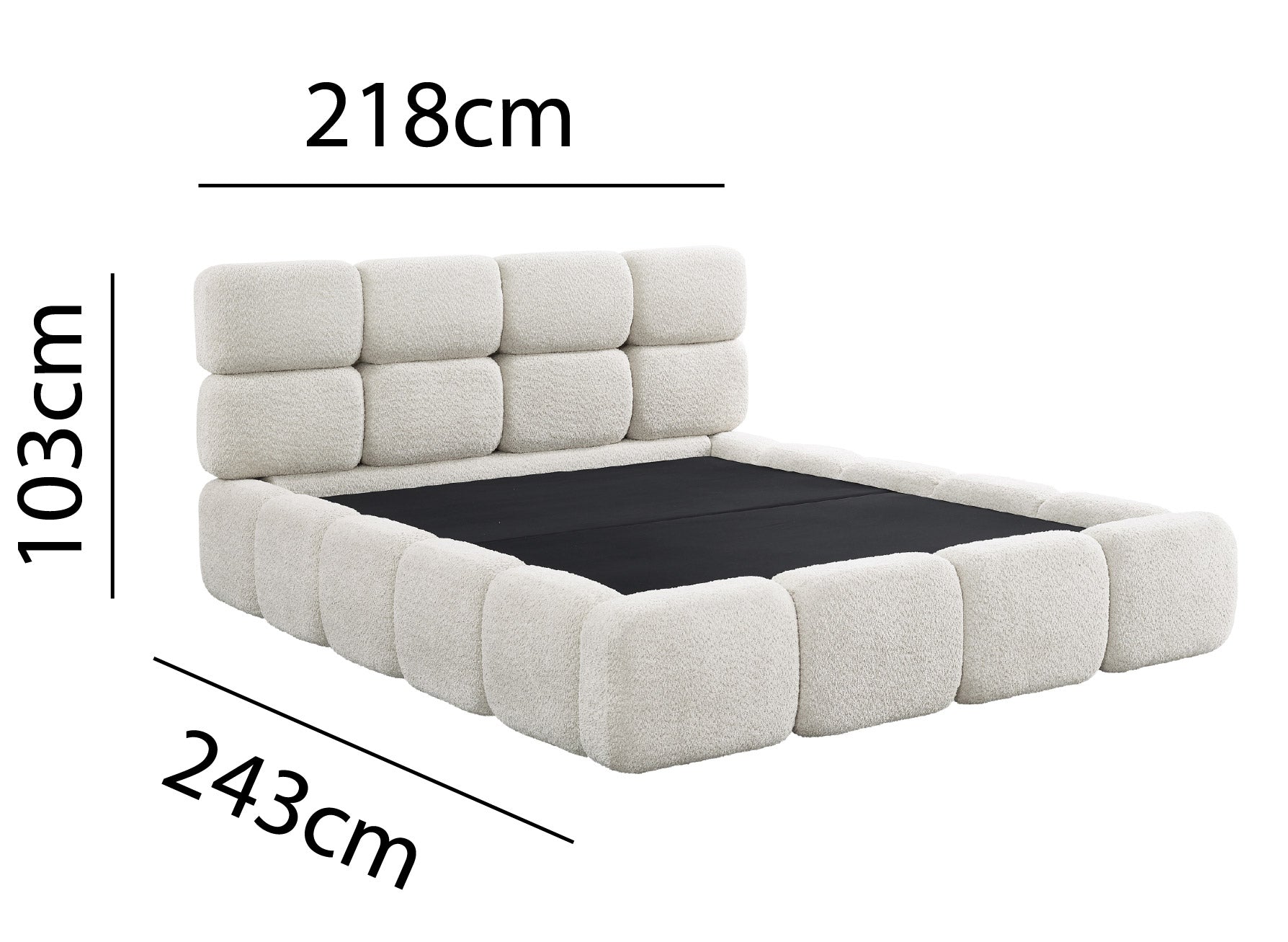 Lit coffre tissu bouclette beige 180x200 cm BUBBLE