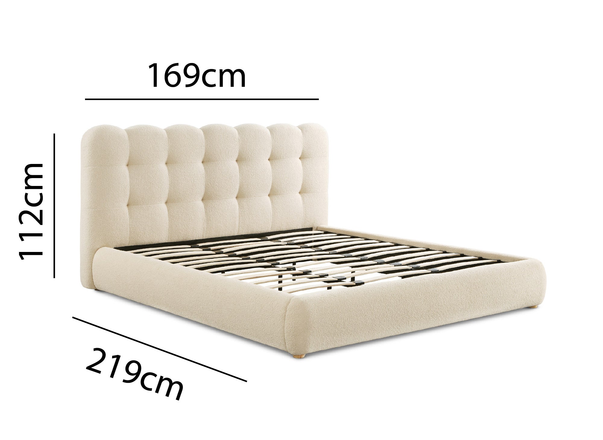 Transformez votre chambre avec ce lit double en tissu bouclette beige 140x190cm BISCUIT, alliant confort, élégance et fonctionnalité.