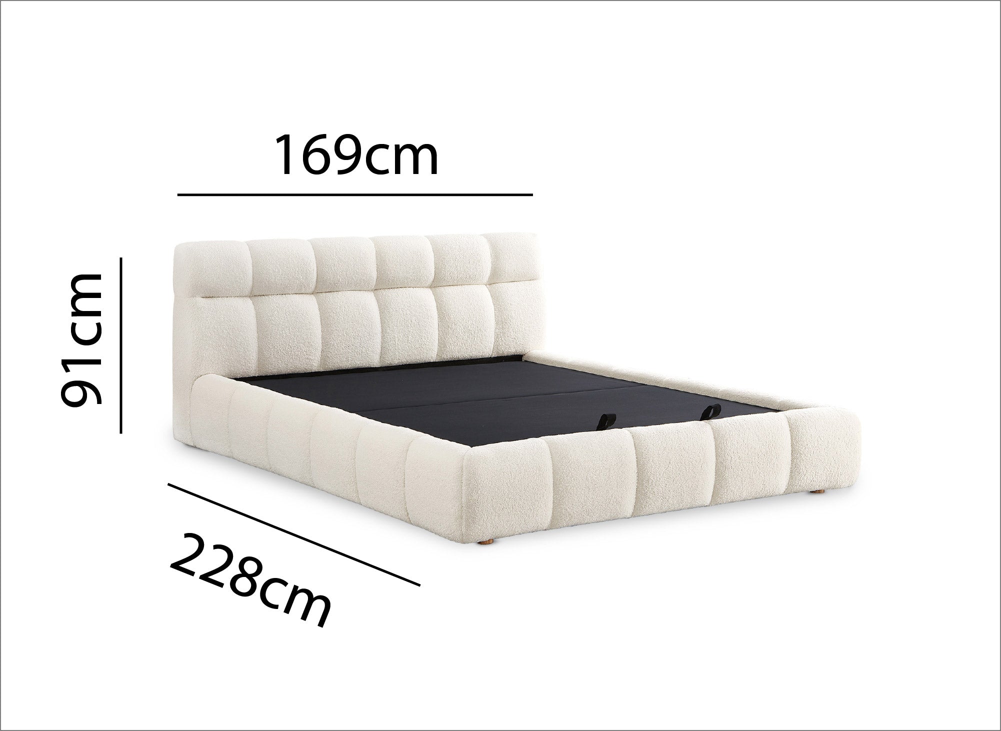 Conçu pour sublimer votre espace de sommeil, ce lit se distingue par son revêtement en tissu bouclette doux et sa tête de lit capitonnée, créant un environnement à la fois chic et confortable.Le tissu bouclette écru offre une finition douce qui s'intègre parfaitement dans une décoration moderne ou classique.