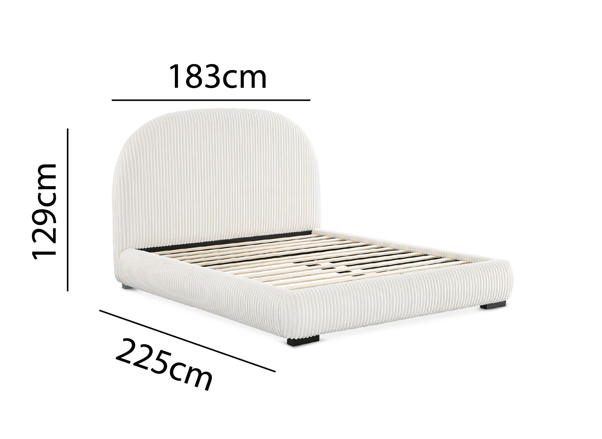 Lit double en velours côtelé épais beige 160x200cm COSY