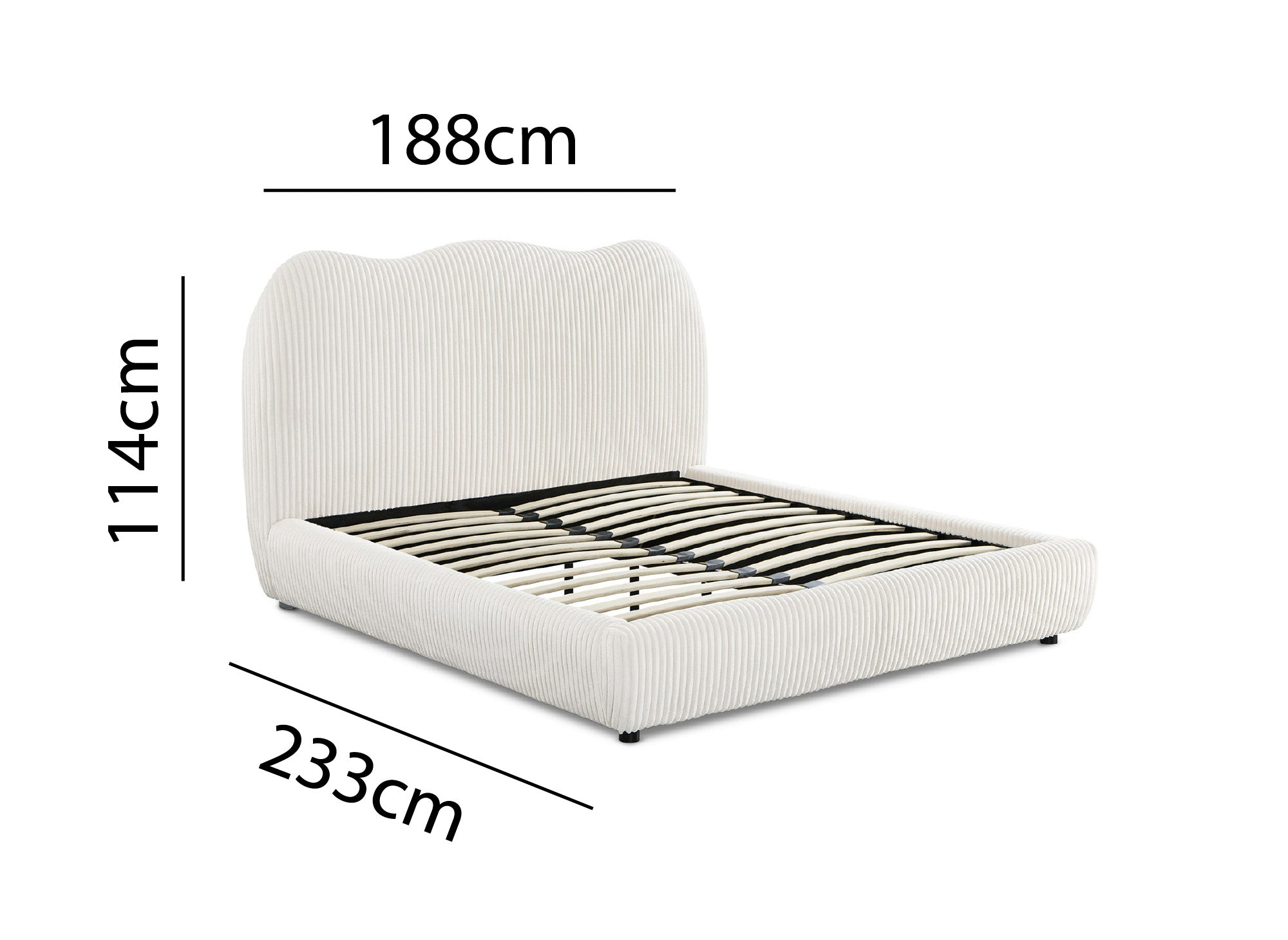 Élégance et confort s'allient parfaitement dans le lit double en velours côtelé épais beige 160x200cm SARA, idéal pour apporter une touche de douceur à votre chambre. Sa forme arrondie et sa tête de lit subtilement ondulée ajoutent un charme intemporel à votre espace de repos.