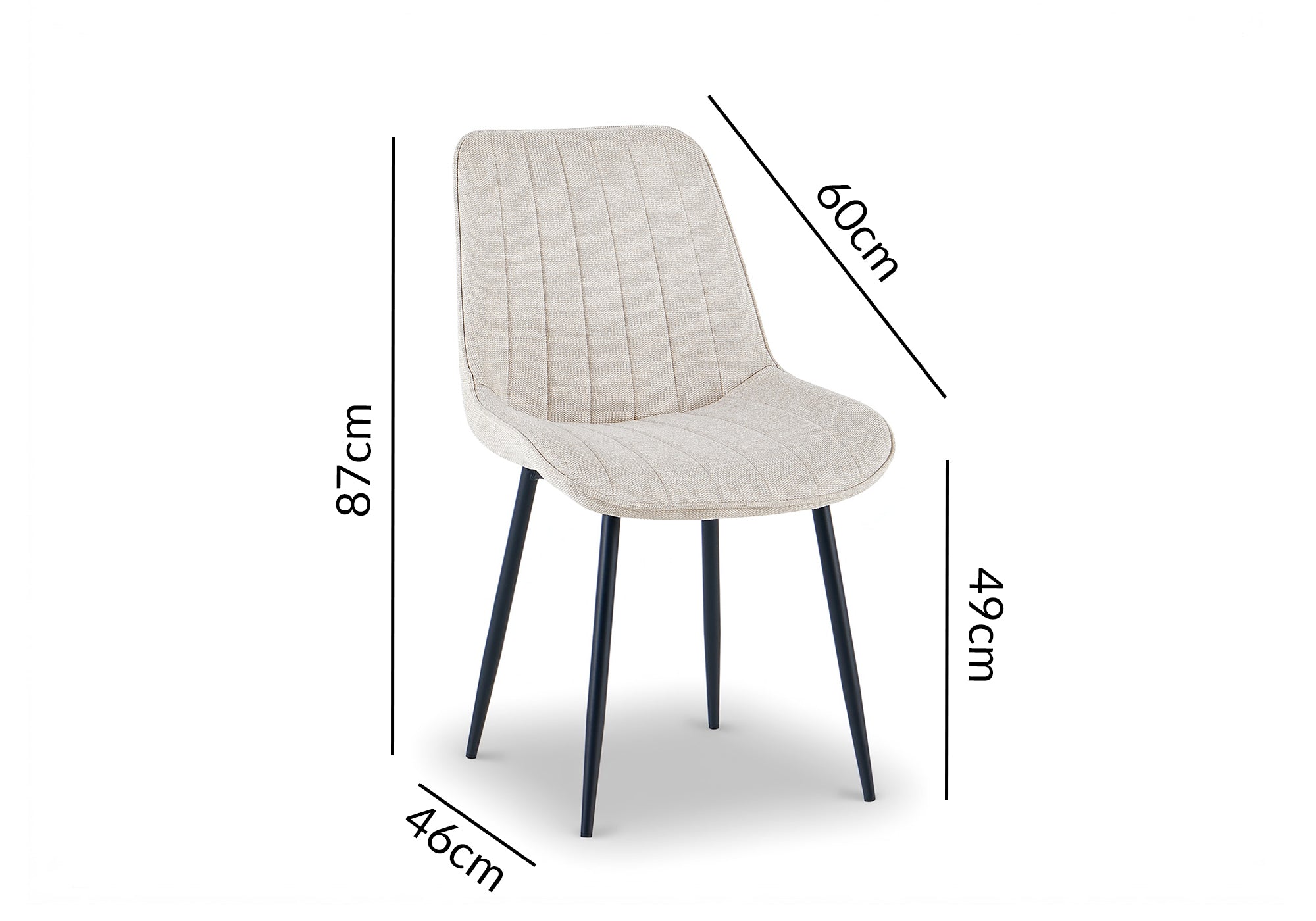 Ses pieds en métal noir assurent une excellente stabilité et une durabilité optimale, tout en offrant une ligne moderne et épurée. La combinaison du tissu et du métal crée un équilibre entre confort et robustesse, permettant à la chaise de s’adapter à un usage quotidien.