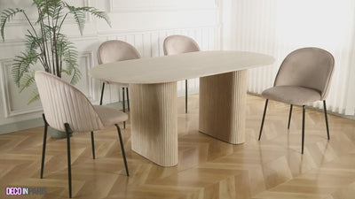 Accueillant jusqu'à 6 personnes, le design unique de la table ELMA est sublimé par ses pieds larges et ovales, conçus dans un style contemporain et épuré. Ces pieds robustes et harmonieux apportent à la fois stabilité et une touche artistique à l'ensemble, tout en renforçant l'esthétisme moderne de la pièce.