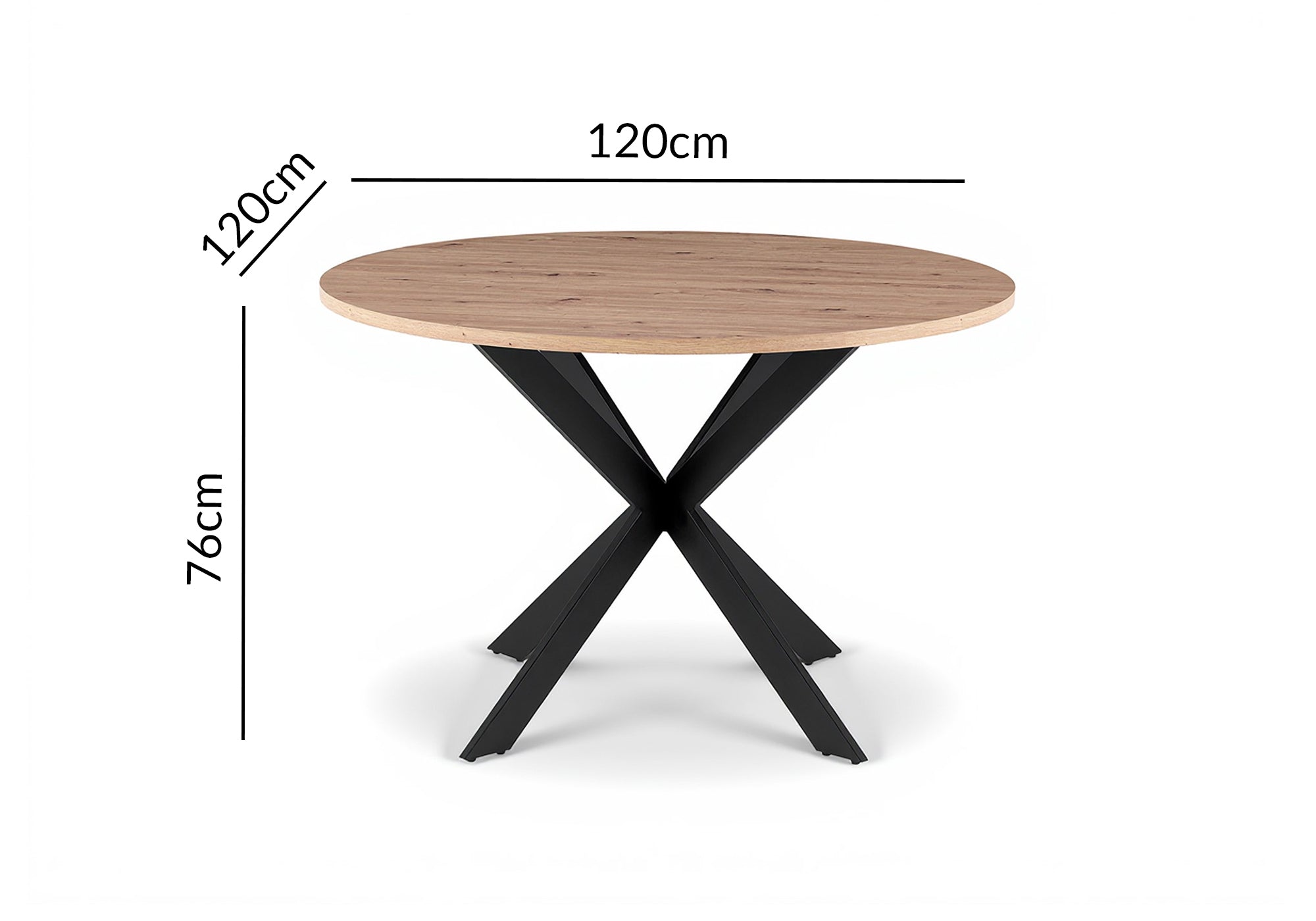 Table à manger ronde plateau effet bois pieds métal noir SINAYA